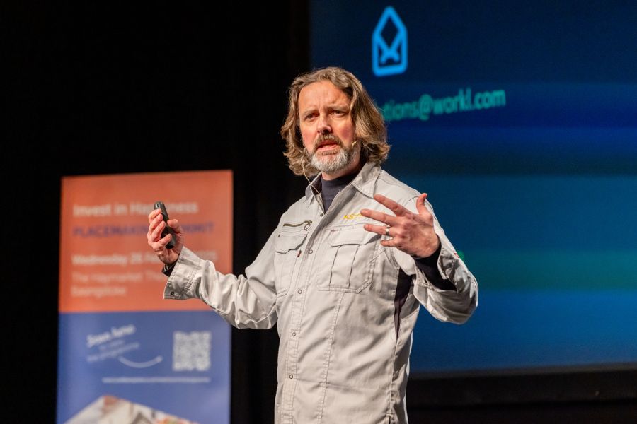 At the Invest in Happiness Summit, a recent placemaking event held in the Haymarket Theatre in Basingstoke, guests were invited to consider how to invest in the very feelings that inspire commitment to somewhere. Organised by Basingstoke & Dean Borough Council, the day brought together a diverse range of perspectives on community and place development – and Momo’s job was to synthesise everyone’s technical and conceptual information in the flow of the live experience.